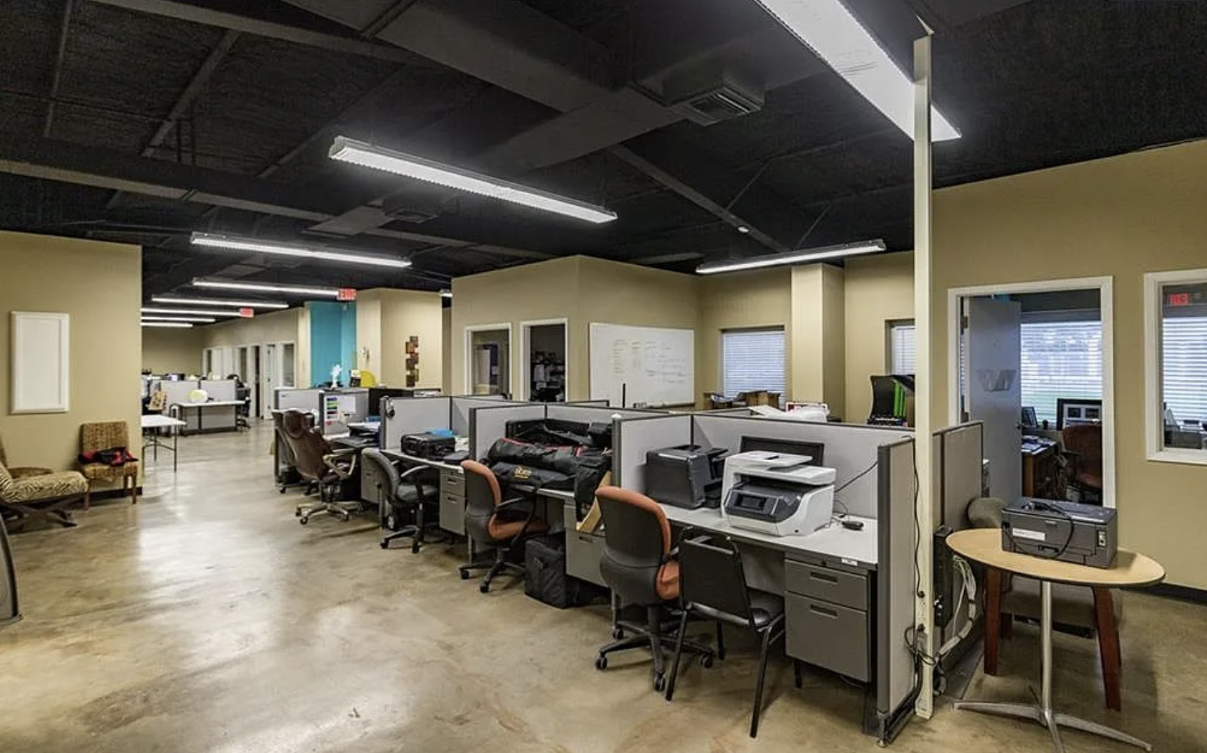 The office building has been recently renovated and currently operating as a coworking space – Tenants bringing in at least $3,000/mo. The layout includes two (2) conference rooms, ten (10) private offices, three (3) restrooms, a kitchen/break room, storage room, IT/security/copy room, reception area, and ample open space suitable for workstations, collaborative areas, or additional meeting space. Individual offices may be leased separately, offering flexibility for smaller users.
